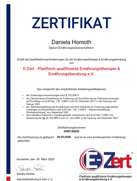 Ernährungstherapeutin (QUETHEB-Zertifikat)